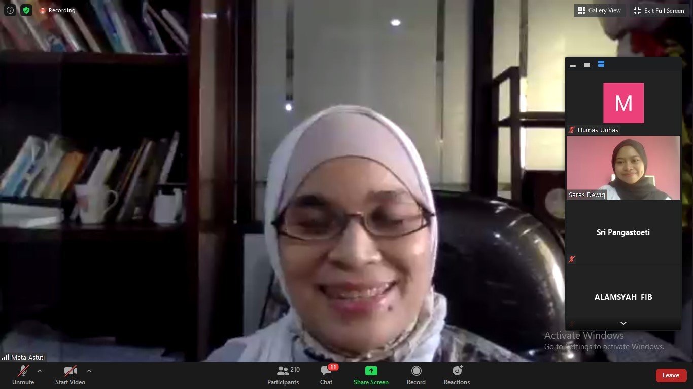 Mengawali kegiatan, Dekan FIB Unhas yang diwakili oleh Ketua Departemen Sastra Jepang Unhas, Meta Sekar Puji Astuti, S.S., M.A.,Ph.D., menuturkan kegiatan bertujuan untuk memberikan gambaran sejarah lokal hubungan Indonesia dan Jepang.