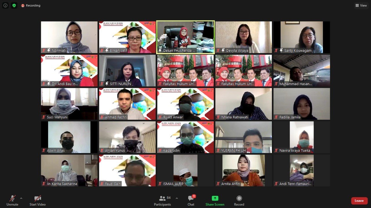 PELAKITA.ID – Dalam rangka Dies Natalis ke-69, Fakultas Hukum Universitas Hasanuddin menyelenggarakan Alumni Sharing Session bertema “Pengalaman Studi di Luar Negeri”. Kegiatan berlangsung mulai pukul 15.00 Wita secara virtual melalui aplikasi zoom meeting, Jumat (19/02).