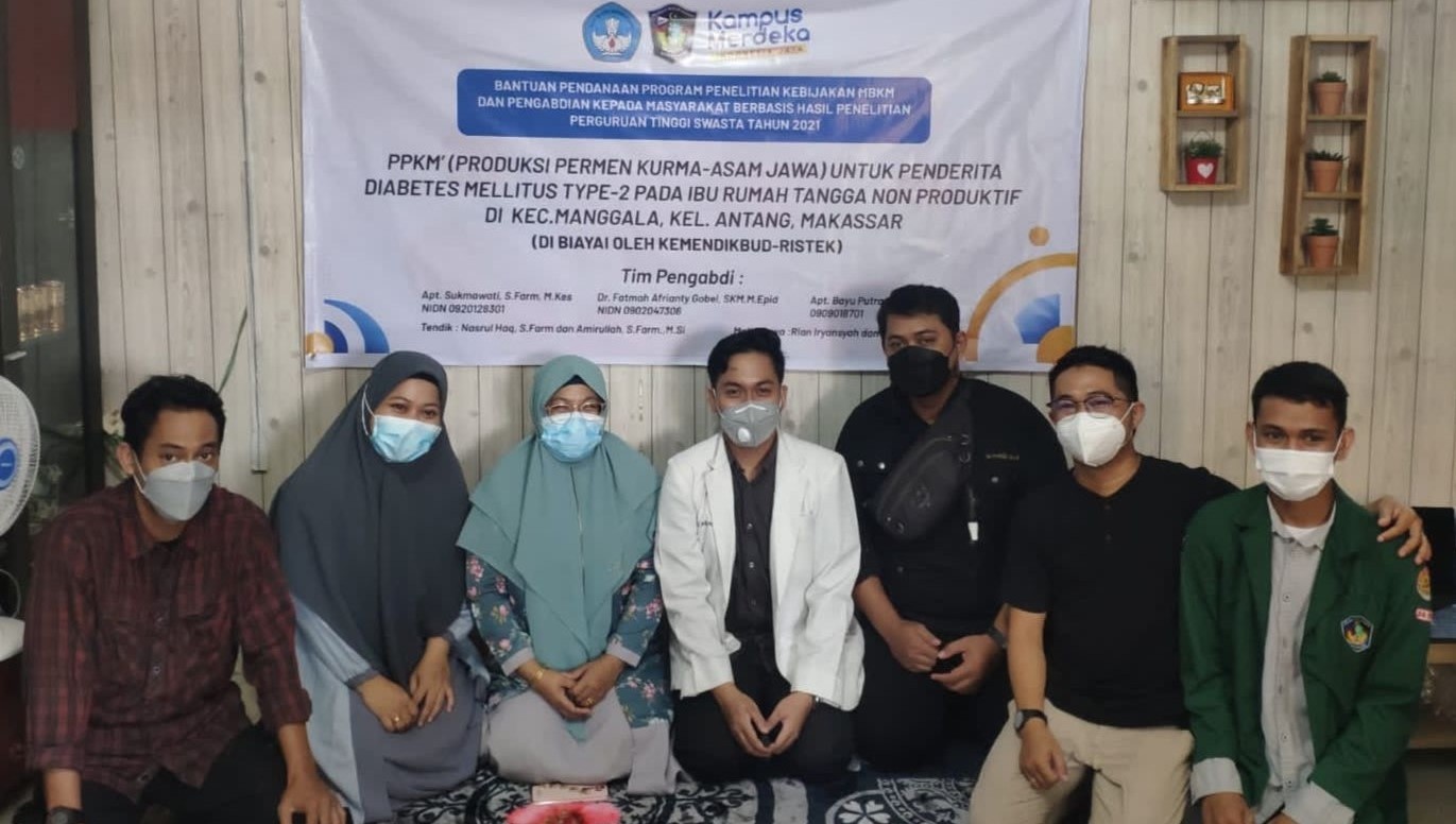Kegiatan ini dilaksanakan pada pemukiman padat penduduk kecamatan Manggala, Bangkala Antang, Kota Makassar dengan melibatkan mitra ibu-ibu rumah tangga non produktif namun memiliki banyak keluhan, dimana salah satunya adalah sejak terjadi pandemi begitu banyak kegiatan yang tertunda termasuk gaya hidup yang susah terkontrol seperti mengkonsumsi makanan siap saji, kurang olahraga dan juga self medication yang tidak lagi konsisten, sehingga meningkatkan faktor resiko penyakit seperti diabetes mellitus.
