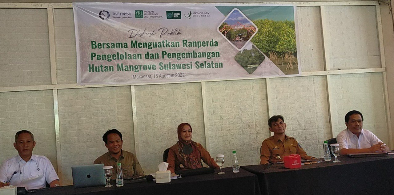Acara berlangsung di Café Red Corner, Makassar, dan dihadiri perwakilan Dinas Kehutanan Sulsel, Guru Besar Kehutanan Unhas Prof Yusran Jusuf, tenaga ahli untuk Ranperda Mangrove Sulsel yaitu Dr Amal dari UNM, Kepala Bidang Pesisir dan Pulau-Pulau Kecil DKP Sulsel. Diskusi dipandu Wahyu Chandra dari Mongabay Indonesia.