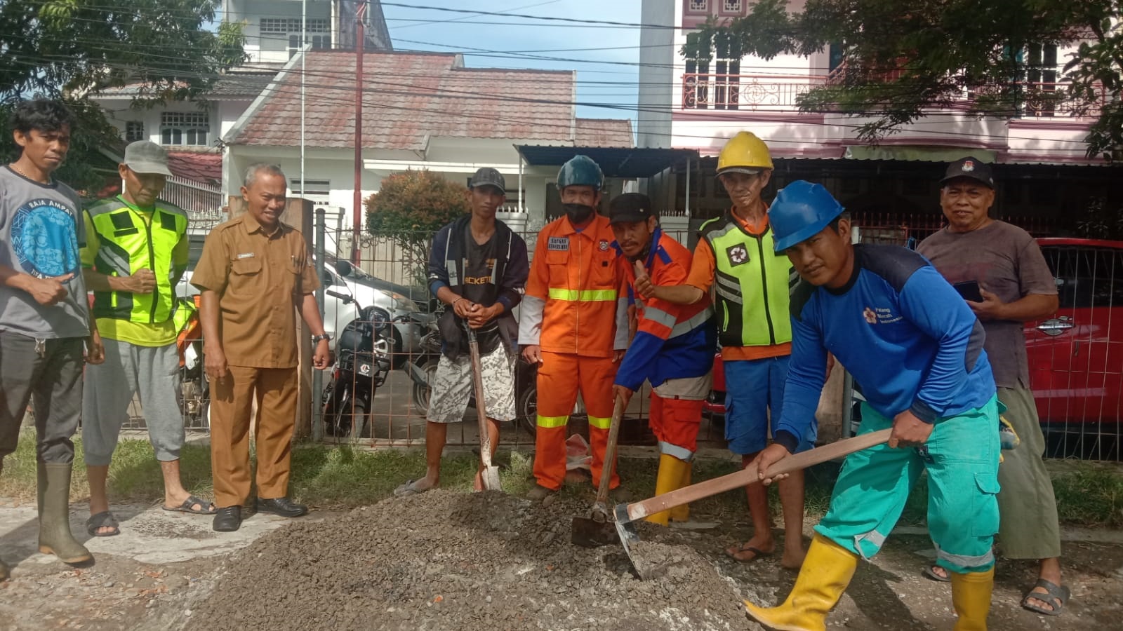 “Senang sekali melihat warga mencampur semen, kerikil, mengoperasikan mesin molen, dan dibantu aparat Polsek dan Kelurahan,” ujar Sugianto.