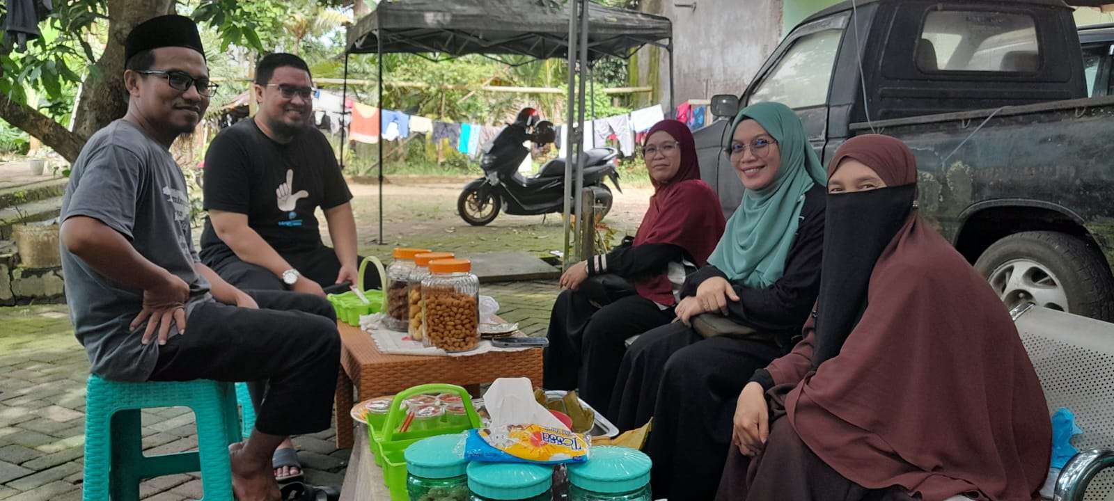 Tamu-tamu yang disuguhi aneka penganan itu duduk di bawah pohon mangga yang rindang. Mereka adalah Miftahul Jannah, S.Pd, M.Pd, Kepala PAUD Sikamaseang, dan relawan literasi.