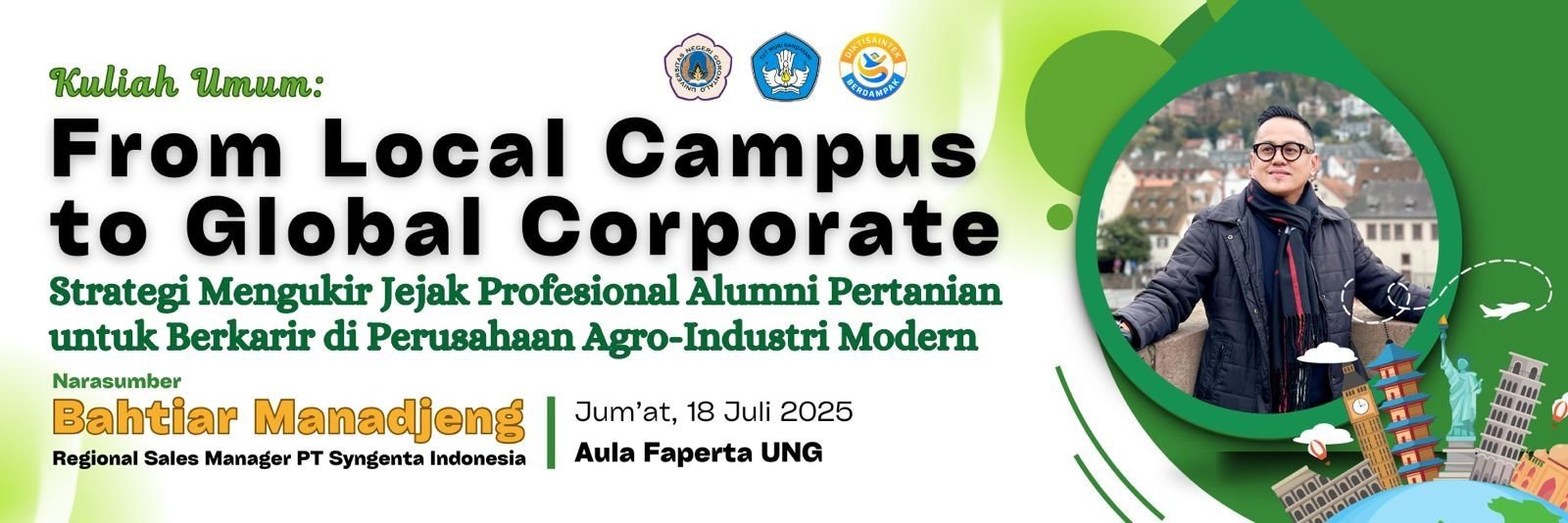 PELAKITA.ID – Fakultas Pertanian Universitas Negeri Gorontalo (UNG) akan menggelar kuliah umum inspiratif bertajuk “From Local Campus to Global Corporate”, menghadirkan narasumber spesial, Bahtiar Manadjeng, seorang profesional senior yang saat ini menjabat sebagai Regional Sales Manager PT Syngenta Indonesia.
