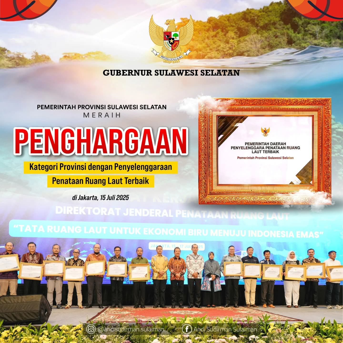 Dikatakan Ilyas, penghargaan ini diserahkan langsung dalam acara bertajuk “Tata Ruang Laut untuk Ekonomi Biru Menuju Indonesia Emas” yang dilaksanakan di Jakarta. Sulawesi Selatan menjadi salah satu dari sedikit provinsi yang mendapat apresiasi tertinggi atas keberhasilannya menyusun, mengimplementasikan, dan mengawal tata ruang laut secara efektif dan berkelanjutan.
