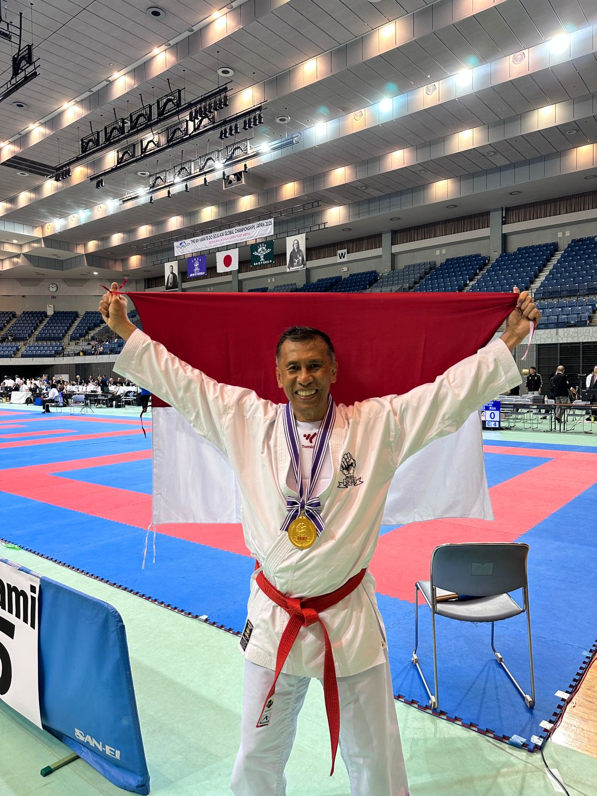 “Alhamdulillah… setelah melewati tujuh lawan dari berbagai negara, akhirnya masuk final melawan karateka tuan rumah Jepang dan menang dengan 2 wazari,” ujar Chaerul Amir, pemegang sabuk hitam DAN 5 Gojuryu, kepada Pelakita.ID, Kamis (14/8/2025).