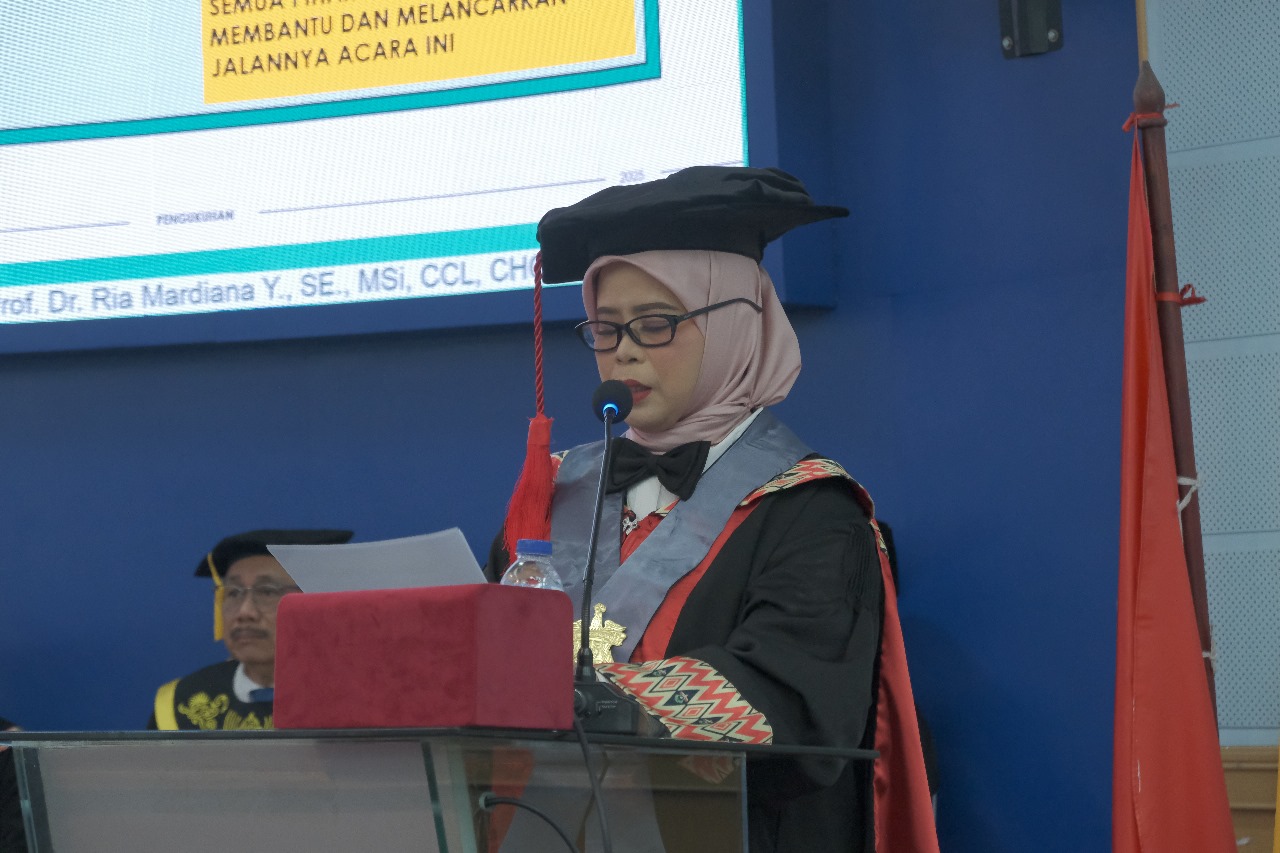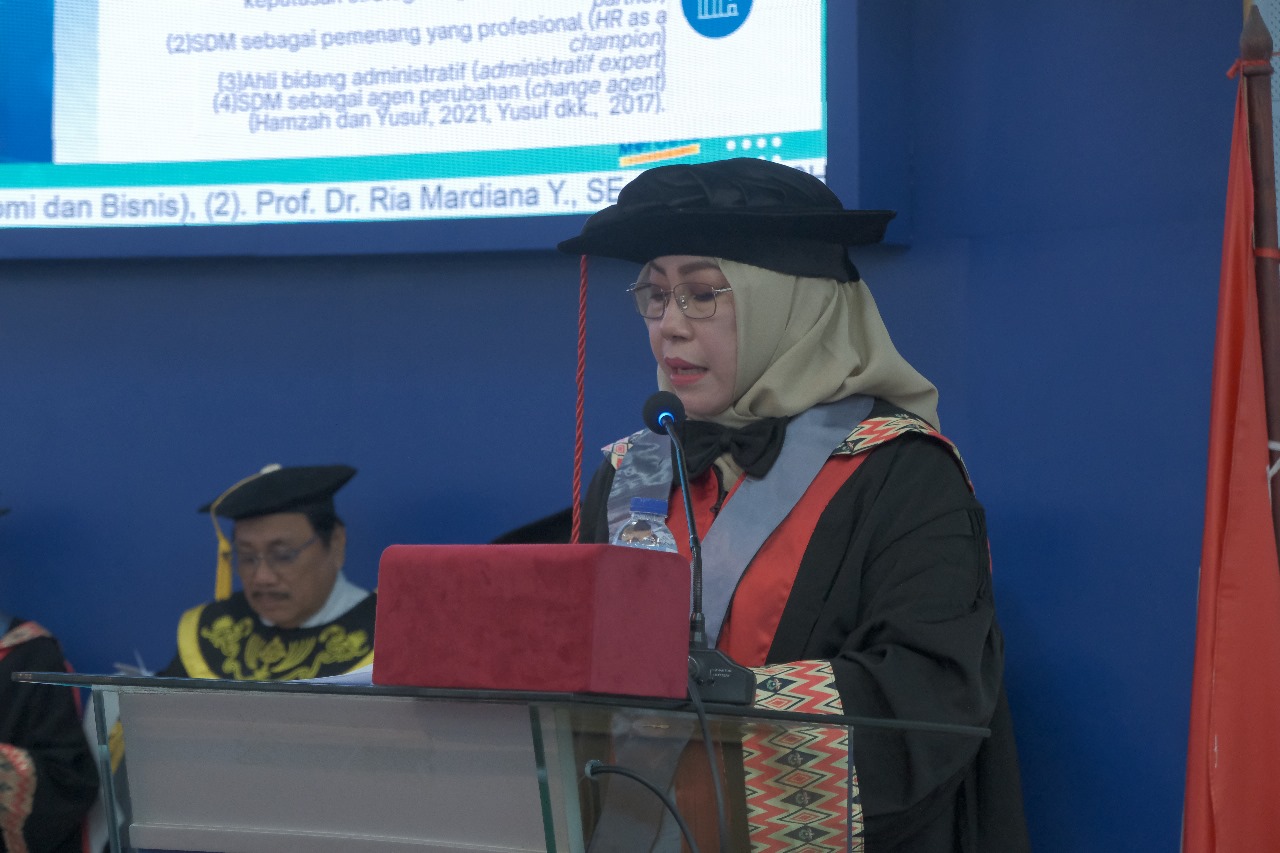 Guru Besar Bidang Sistem Informasi Akuntansi ini menyampaikan pidato berjudul “Rekayasa Manajemen Sumber Daya Manusia Menuju Manajemen ‘Human Capital’ Berbasiskan K2T (Kompetensi, Talenta, dan Komitmen)”.