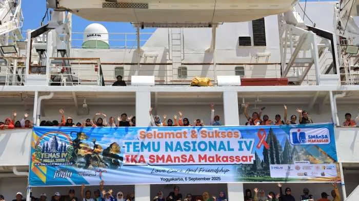 Perjalanan laut ini menjadi simbol kebersamaan yang kuat—ribuan alumni berlayar bersama, bernyanyi, berdiskusi, dan menghidupkan semangat kolektif sebelum tiba di lokasi acara.