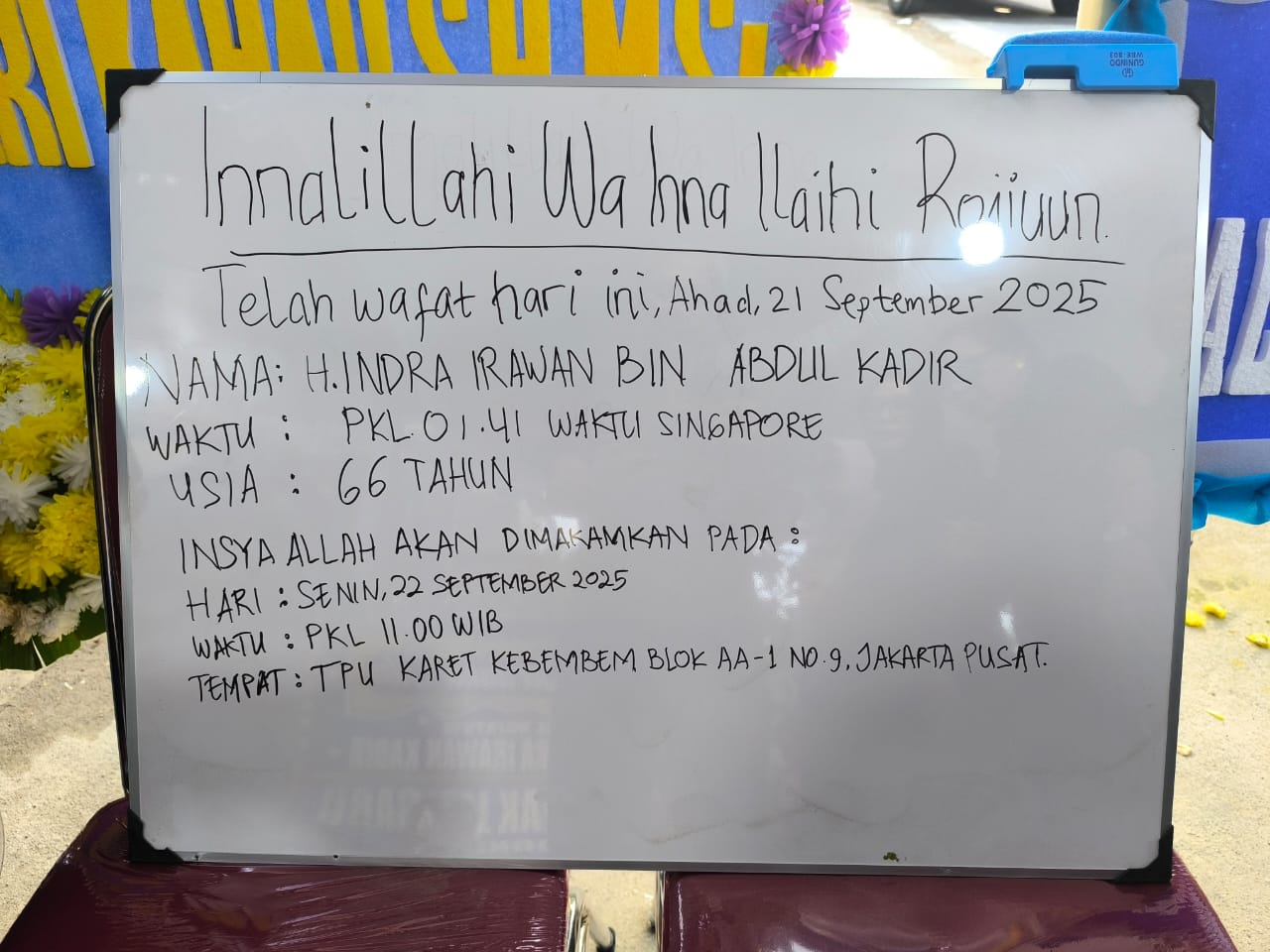 PELAKITA.ID – Sahabat kami di Smansa 89, Tri Buana Dewi, berbagi pesan duka: “Innalillahi wa inna ilaihi raji’un. Telah berpulang ke rahmatullah Bapak Indra Irawan Kadir, suami, ayah, dan opa tercinta, pada Minggu dini hari, 21 September 2025, dalam usia 66 tahun.”