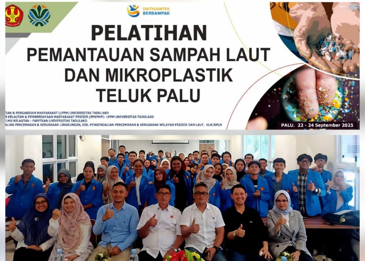 PELAKITA.ID – Pusat Penelitian Kelautan dan Pemberdayaan Masyarakat Pesisir (PPKPMP) LPPM-UNTAD bekerja sama dengan Satuan Kerja Deputi Pengendalian Pencemaran dan Kerusakan Lingkungan, Kementerian Lingkungan Hidup/Badan Pengendalian Lingkungan Hidup (KLH/BPLH), menggelar Pelatihan Pemantauan Sampah Laut & Mikroplastik Teluk Palu pada Senin–Rabu, 23–24 September 2025.