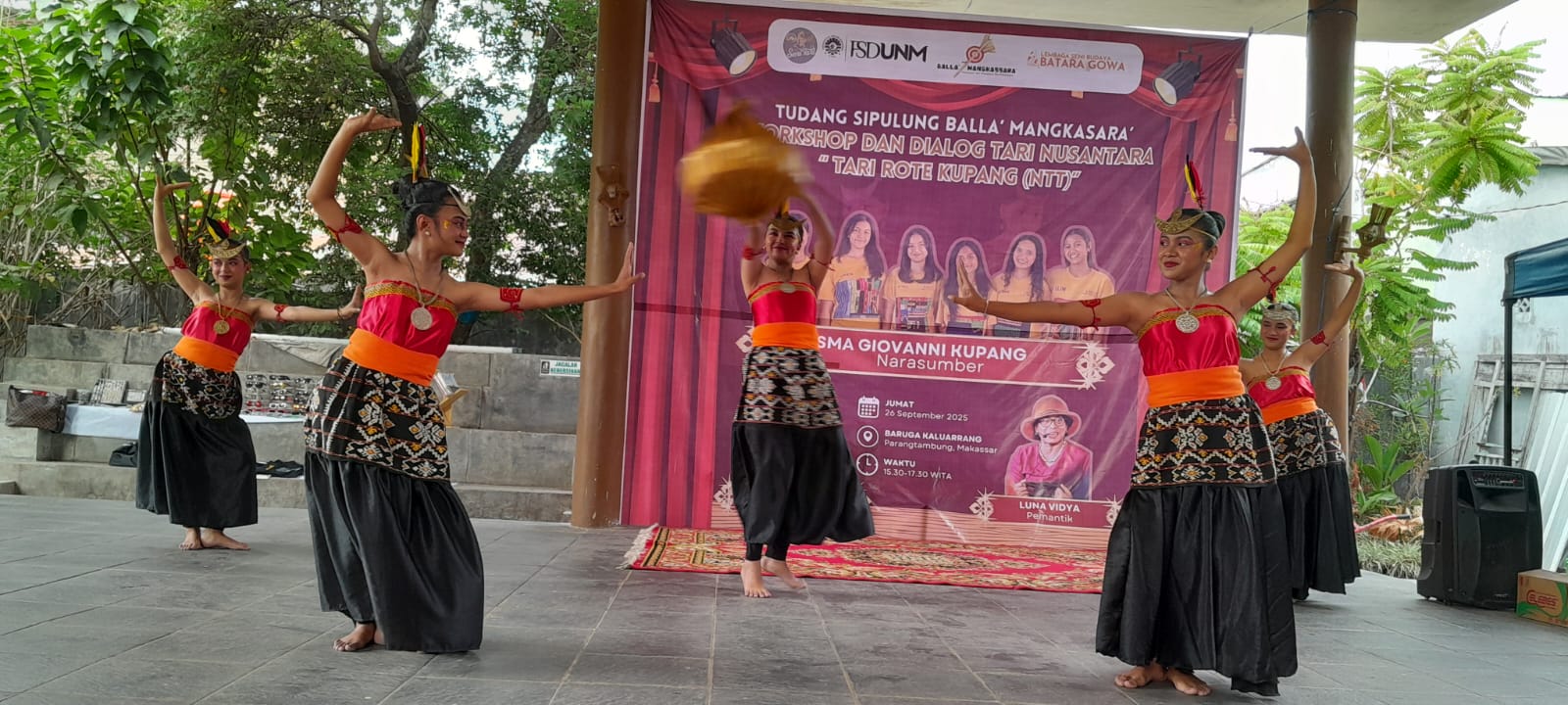 Saya sendiri menikmati suasana sore itu di Baruga Kaluarang. Apalagi pada sesi workshop di mana mahasiswa Jurusan Seni Tari menari bersama dengan para penari Gen Z asal Kupang.