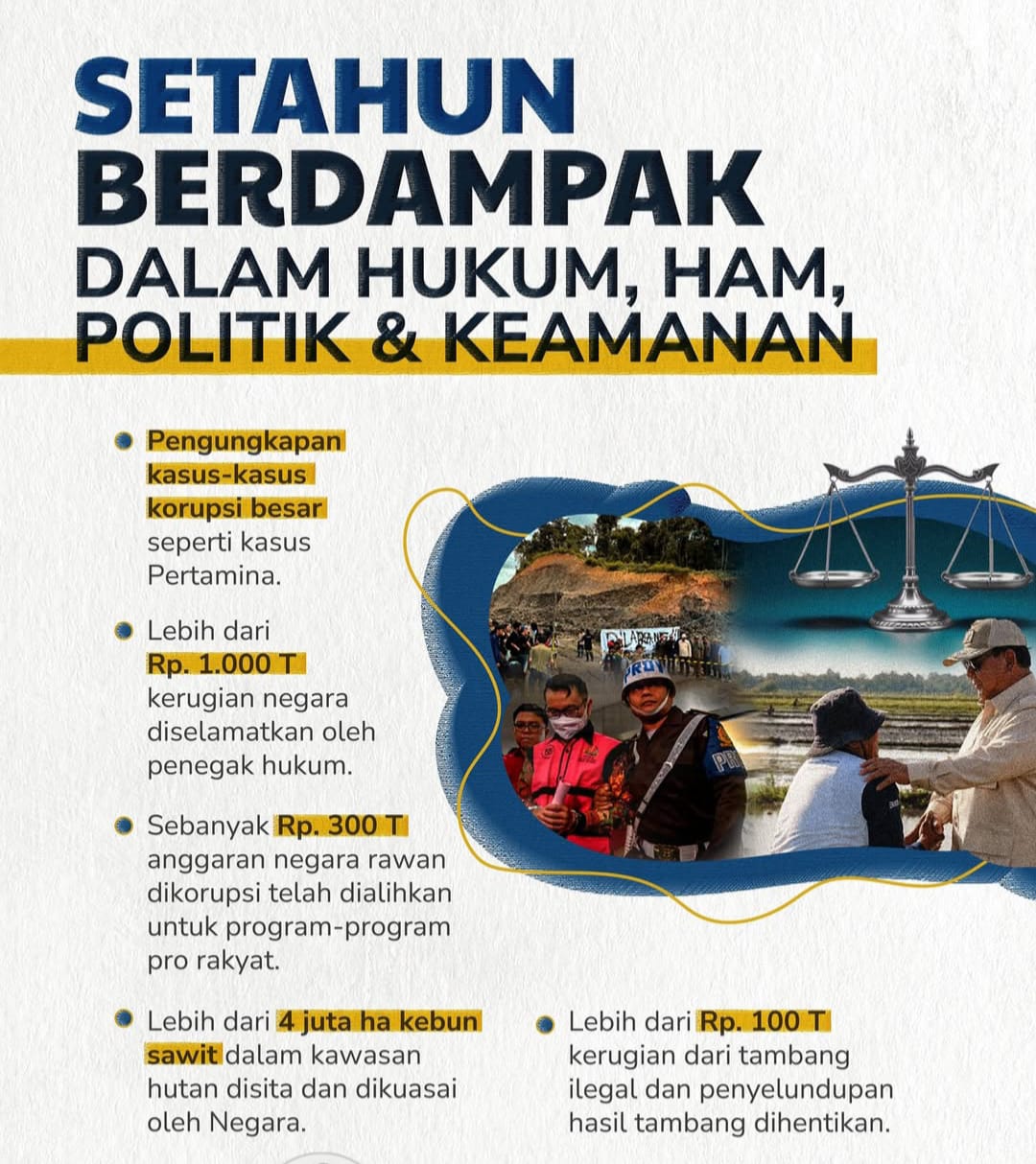 Terkait apa yang disampaikan Burhanuddin itu, dia lengkapi dengan infografis yang menjelaskan dampak kepemimpinan Presiden Prabowo.