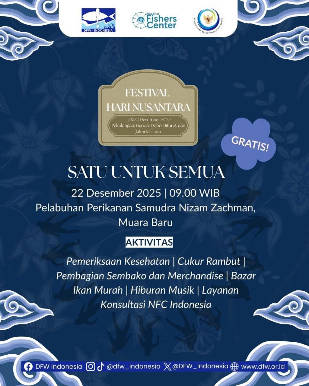Bertempat di Pelabuhan Perikanan Samudera (PPS) Nizam Zachman, perhatian negara tertuju pada mereka yang selama ini bekerja jauh dari sorotan: Awak Kapal Perikanan (ABK). Adalah Destructive Fisihng Watch Indonesia (DFW Indonesia) bersama DJ Perikanan Tangkap Kementerian Kelautan dan Perikanan merayakan Hari Nusantara dengan sejumlah kegiatan penting dan strategis.