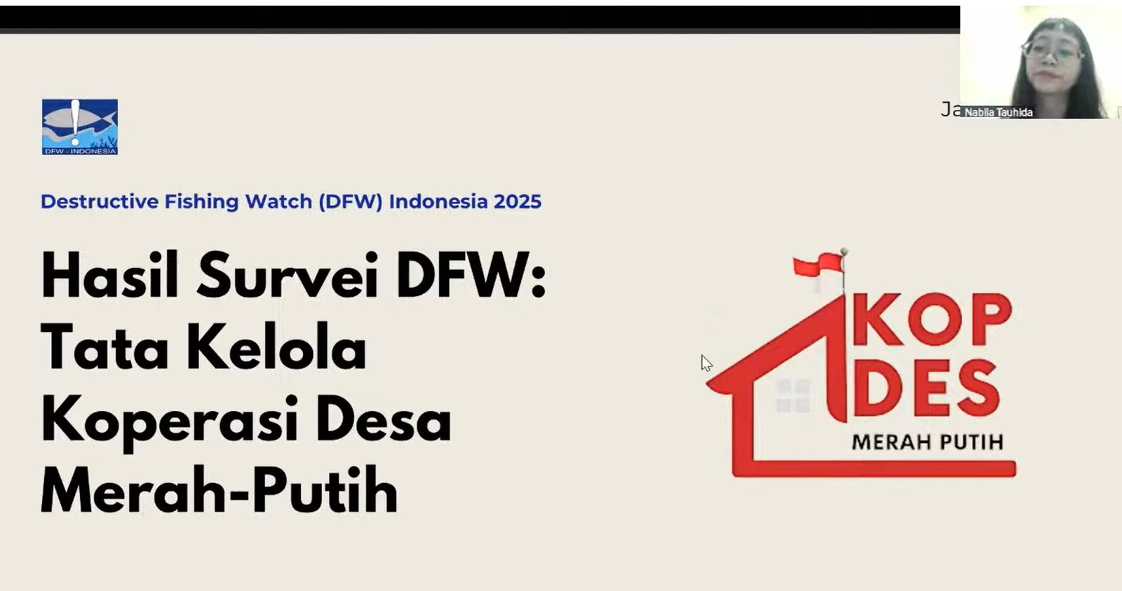 Paparan utama survei disampaikan oleh Lutfian Haikal, Human Rights Program Manager DFW Indonesia. Ia menjelaskan bahwa survei tata kelola Koperasi Desa dan Kelurahan Merah Putih dilakukan di 19 provinsi dengan melibatkan 146 responden pengurus koperasi.