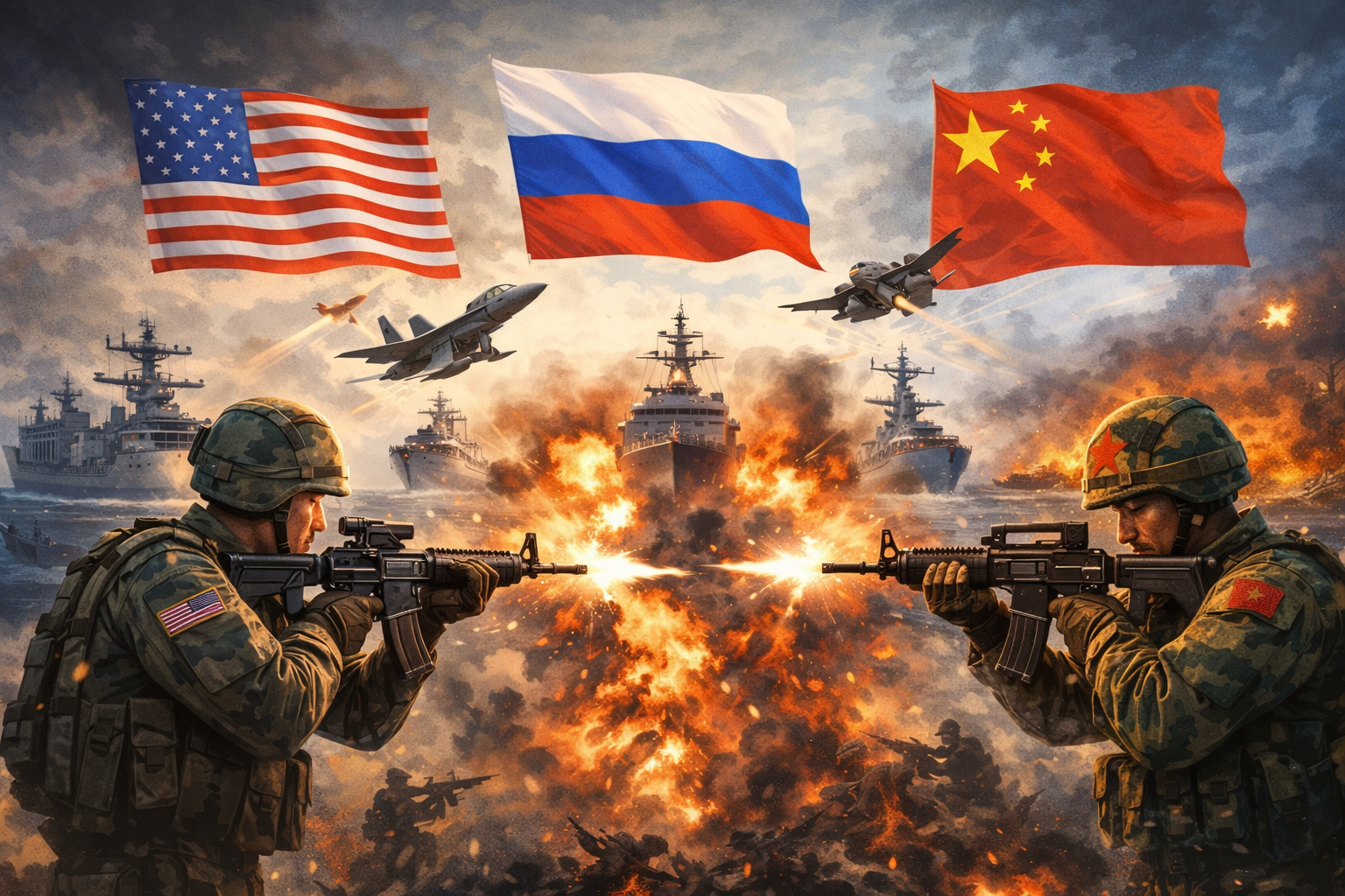PELALKITA.ID – Perang hipotetis antara tiga negara, yaitu Amerika Serikat, China, dan Rusia, mewakili konflik kekuatan besar yang paling dahsyat yang dapat dibayangkan, jauh melampaui Perang Dunia dalam skala dan kehancuran potensial.