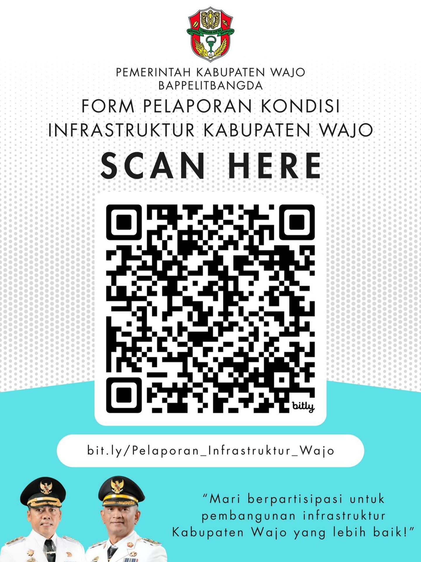 PELAKITA.ID – Pemerintah Kabupaten Wajo melalui Badan Perencanaan Pembangunan, Penelitian, dan Pengembangan Daerah (Bappelitbangda) mengajak seluruh masyarakat Kabupaten Wajo untuk berpartisipasi aktif dalam pelaporan kondisi infrastruktur di wilayahnya.