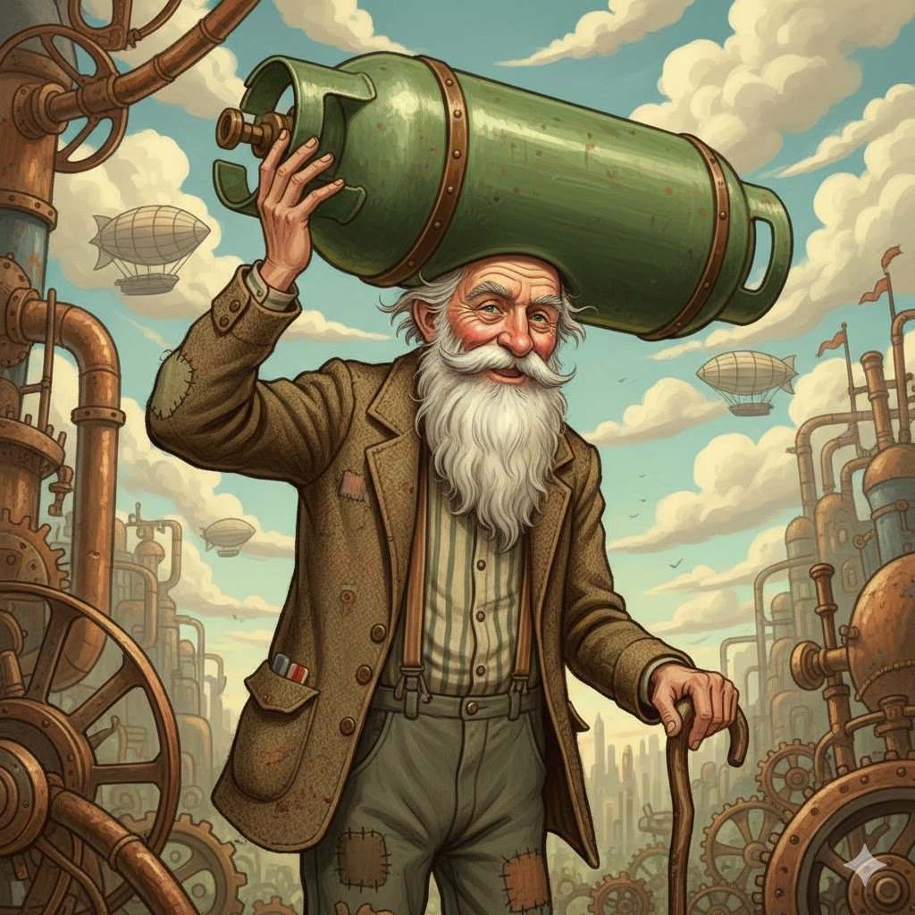 “Lho, Pak Kepala Sekolah? Mau tambah gas hijau lagi?” sapa Pak Kumis, pemilik pangkalan.