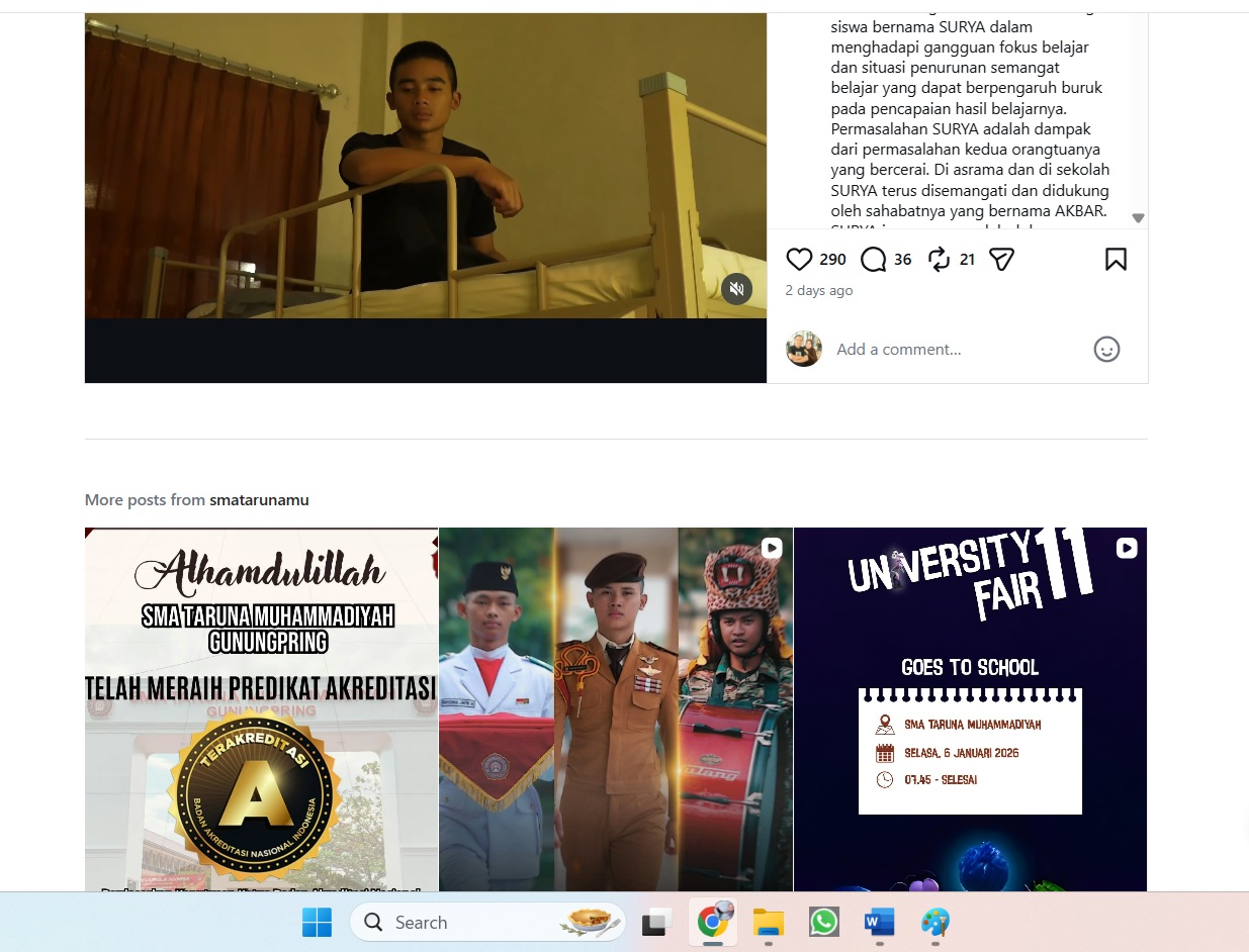 SMA TarunaMu aktif membagikan berbagai kegiatan, nilai, dan capaian pendidikan yang menekankan pembentukan karakter, kepemimpinan, serta keunggulan akademik. Dengan semangat #sekolahcalonpemimpin, SMA TarunaMu menegaskan perannya sebagai lembaga pendidikan yang tidak hanya berfokus pada prestasi, tetapi juga pada penguatan nilai-nilai moral, disiplin, dan kepemimpinan bagi para tarunanya.