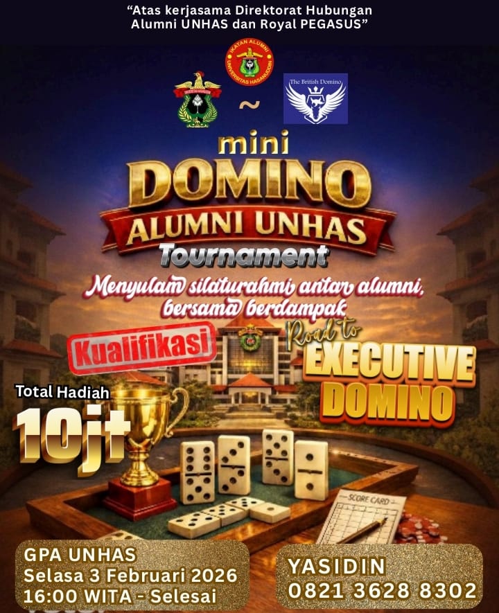 Dengan semangat kebersamaan, Mini Domino Alumni Unhas XII diharapkan tidak hanya melahirkan pemenang di arena permainan, tetapi juga memperkuat jejaring alumni yang solid, berdaya, dan berdampak bagi almamater serta masyarakat luas.