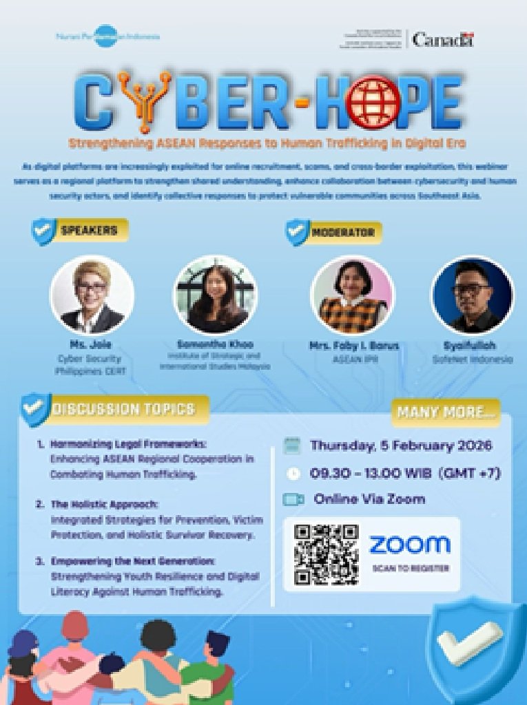 PELAKITA.ID — The webinar CYBER-HOPE: Strengthening ASEAN Responses to Human Trafficking in the Digital Era, organized by Nurani Perdamaian Indonesia with support from the Canada Fund for Local Initiatives, was held on Thursday, 5 February 2026.