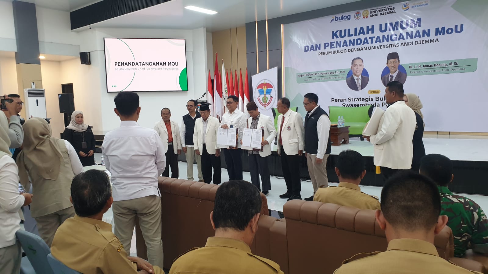 Penandatanganan MoU antara Perum Bulog dan Universitas Andi Djemma menjadi langkah awal dalam memperkuat kerja sama kelembagaan, khususnya di bidang pendidikan, penelitian, pengabdian kepada masyarakat, serta pengembangan program-program strategis yang berkaitan dengan sektor pangan dan logistik.
