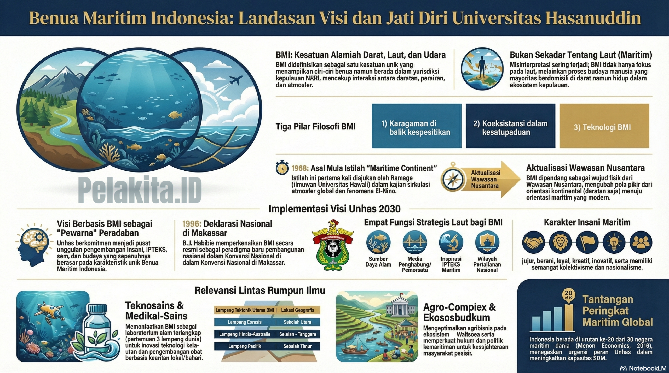 PELAKITA.ID – Buku Putih Benua Maritim Indonesia (2023) disusun untuk menjawab satu pertanyaan mendasar: sejauh mana visi Universitas Hasanuddin yang berbasis kemaritiman relevan bagi program studi yang aktivitas akademiknya berada di daratan?