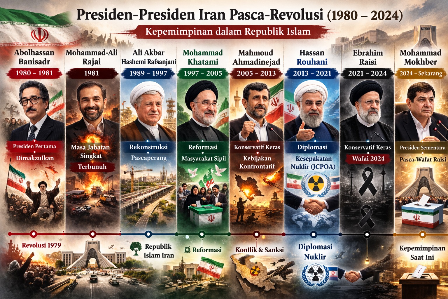 Ebrahim Raisi (2021–2024) – Konservatif garis keras (meninggal dunia saat menjabat pada 2024).
