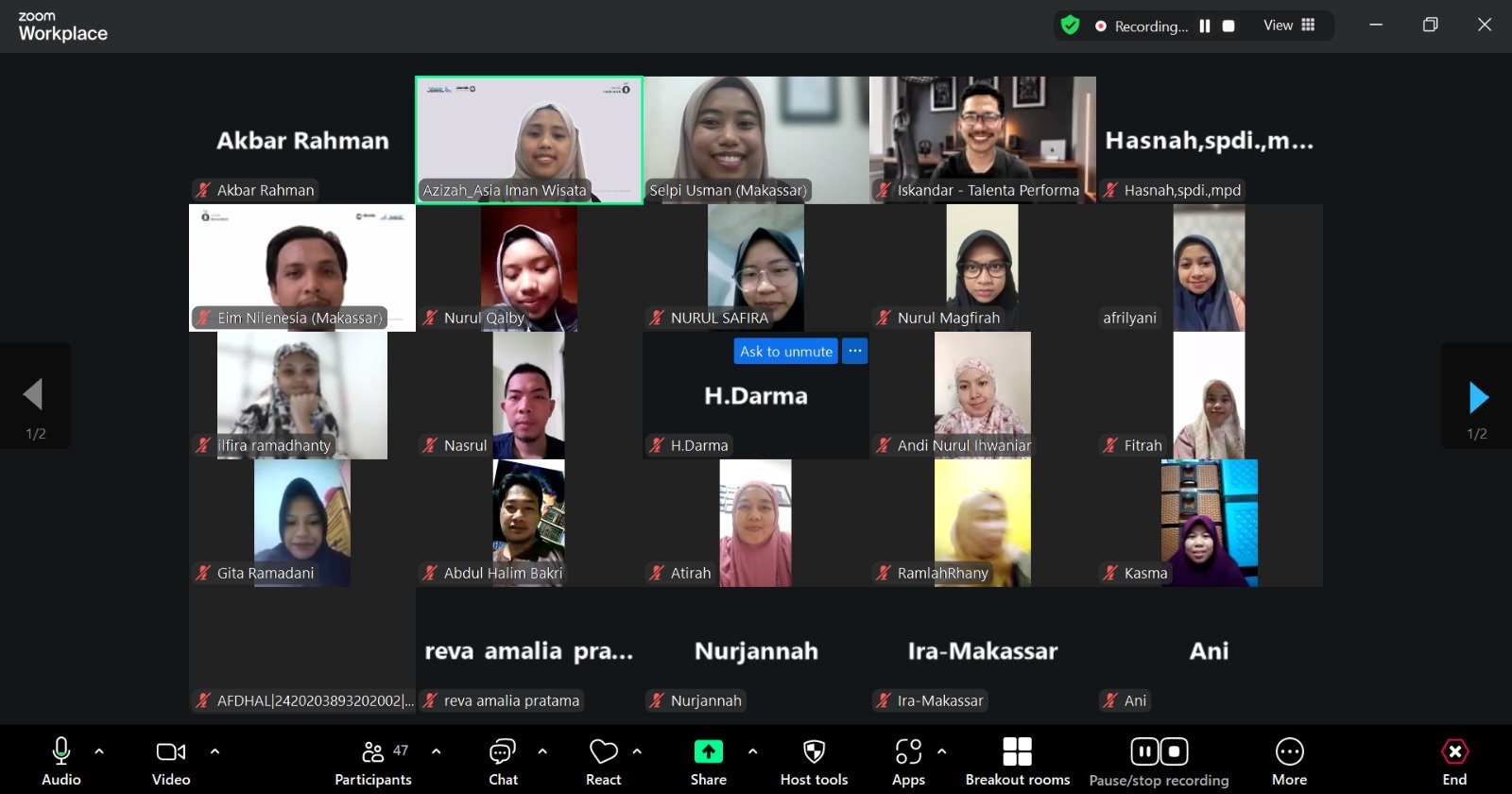 Webinar yang dilaksanakan secara daring melalui Zoom dan terbuka secara gratis ini mengalami peningkatan jumlah peserta, dengan total 60 peserta dari berbagai daerah di Indonesia.