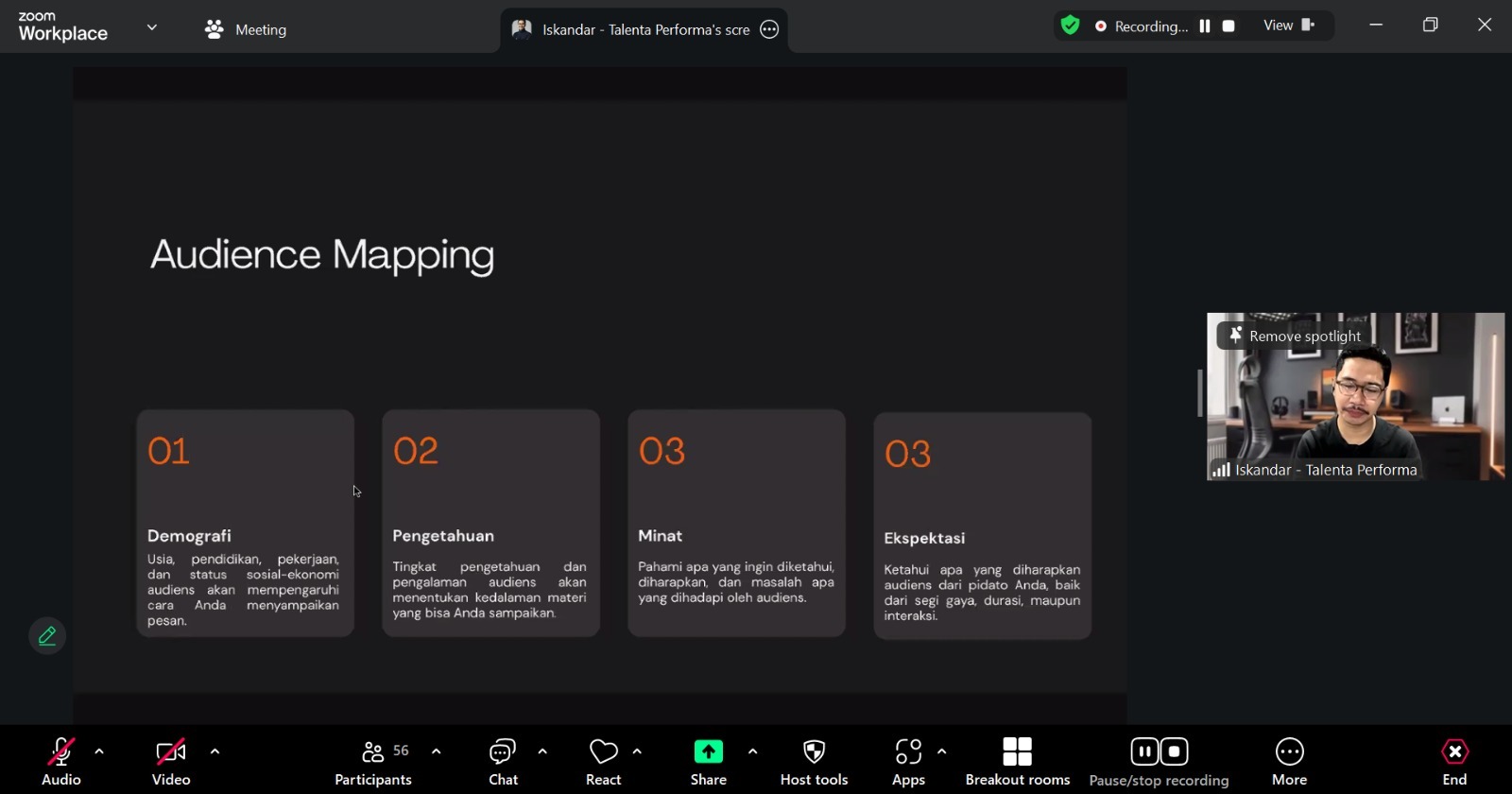 Hadir sebagai narasumber adalah Iskandar, S.Psi., CPT, seorang profesional di bidang Public Speaking yang telah melatih lebih dari 2.000 siswa serta menangani lebih dari 50 klien korporat selama 13 tahun terakhir. Ia juga tersertifikasi BNSP sebagai Trainer dan Asesor Kompetensi, serta menjabat sebagai CEO Talenta Performa.