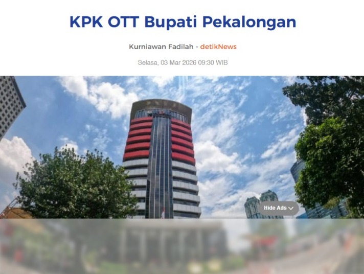 KPK kembali melakukan operasi tangkap tangan (OTT). Kali ini, operasi senyap itu dilakukan di wilayah Pekalongan, Jawa Tengah. Kabar OTT ini dibenarkan oleh juru bicara KPK Bufi Prasetyo saat dikonfirmasi. Budi menyebutkan salah satu yang ikut terjaring OTT adalah Bupati Pekalongan Fadia Arafiq.