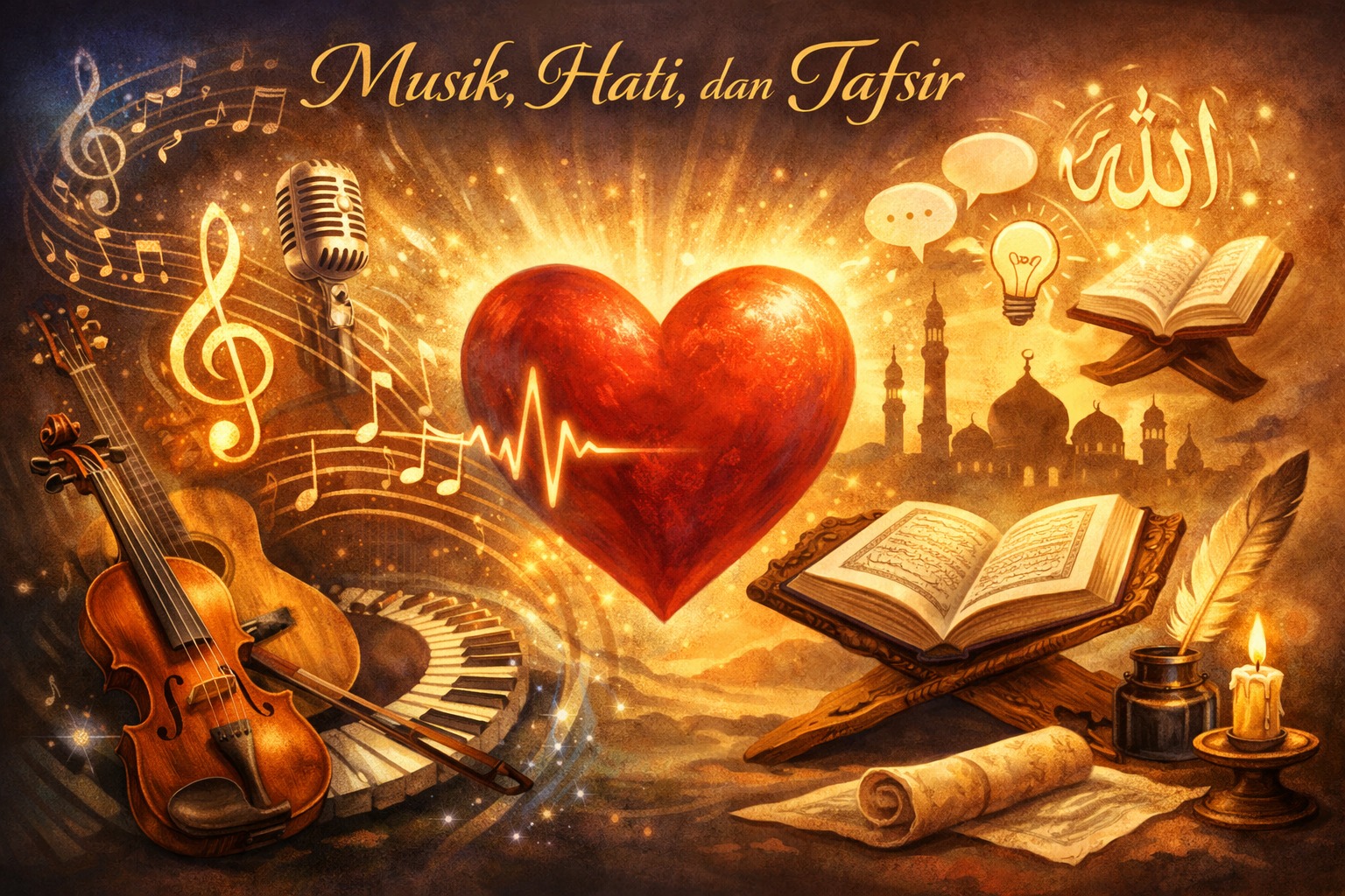 Apakah ia nada? Lirik? Instrumen? Irama? Atau suasana yang lahir dari perpaduan semuanya? Jika sekadar bunyi yang teratur dan berirama disebut musik, bukankah tilawah Al-Qur’an juga bergerak dalam tangga nada?
