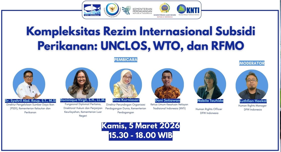 Hal itulah yang disampaikan oleh Syahril Abd Raup, Direktur Pengelolaan Sumber Daya Ikan pada Direktorat Jenderal Perikanan Tangkap di Kementerian Kelautan dan Perikanan,pada webinar yang digelar DFW Indonesia tentang dinamika rezim global pengelolaan perikanan pada 5 Maret 2026.