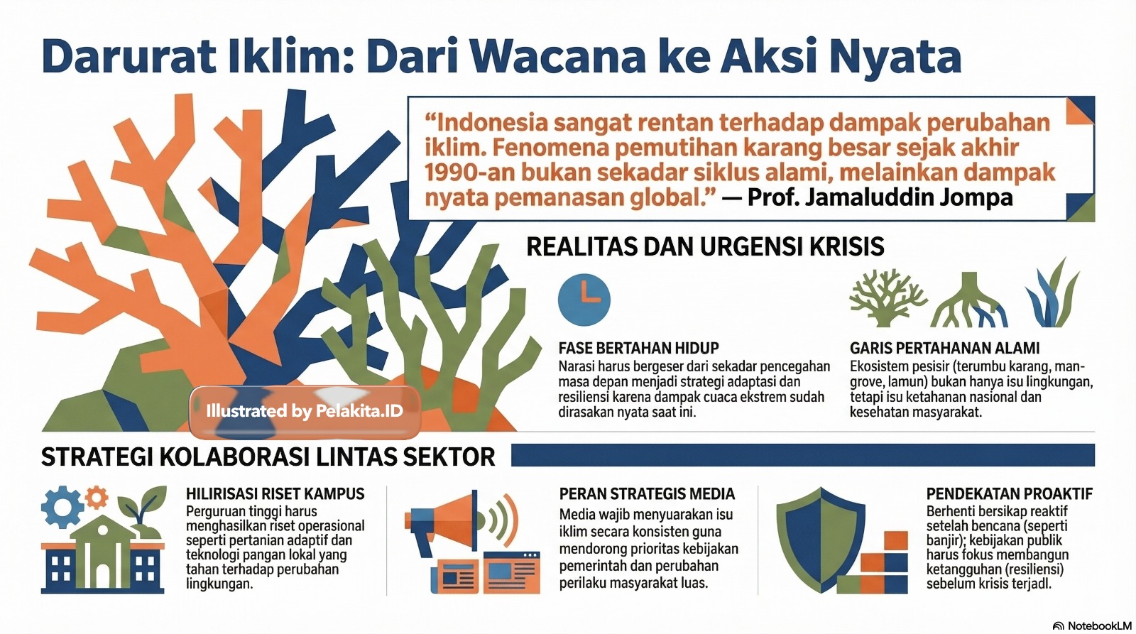 Guru Besar Kelautan Unhas itu menyebut sebagai negara kepulauan, Indonesia sangat rentan terhadap dampak perubahan iklim. Dalam berbagai penelitian yang pernah dilakukan, termasuk penelitian pada akhir 1990-an, tercatat bahwa fenomena pemutihan karang yang besar pada masa itu bukan sekadar siklus alami.