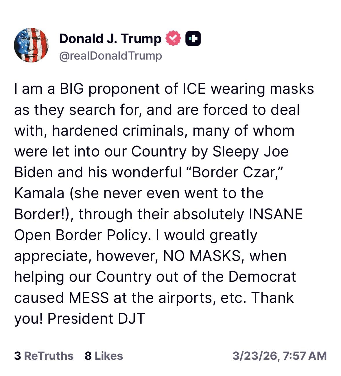 Sekilas, pernyataan tersebut tampak membahas isu operasional yang melibatkan U.S. Immigration and Customs Enforcement (ICE), khususnya penggunaan masker oleh petugas.
