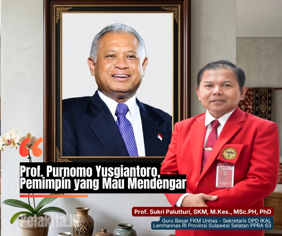 PELAKITA.ID – Guru Besar Fakultas Kesehatan Masyarakat Universitas Hasanuddin, Prof. Sukri Palutturi, SKM, M.Kes., MSc.PH, PhD yang juga Sekretaris DPD IKAL Lemhannas RI Provinsi Sulawesi Selatan PPRA 63 membagikan kesan dan inspirasi dari tokoh nasional Prof Purnomo Yusgiantoro.