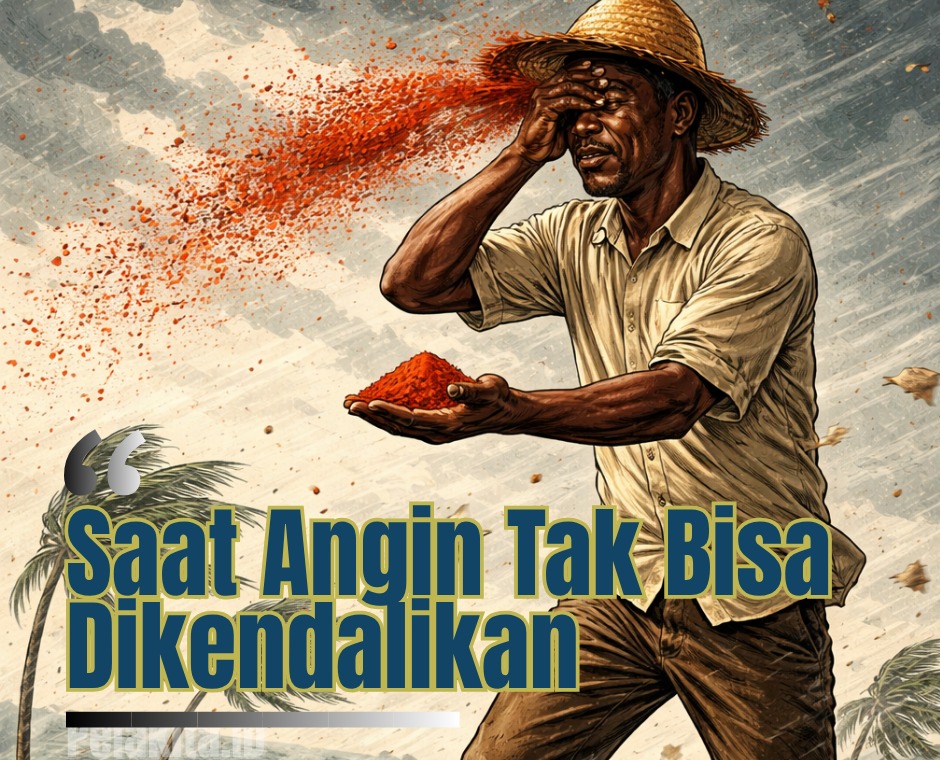 Peribahasa ini mengingatkan bahwa dalam kondisi yang tidak stabil, kesalahan kecil pun dapat berkembang menjadi masalah besar. Melempar “bubuk cabai” ke arah angin bukan hanya sia-sia, tetapi juga bisa berbalik menyakiti diri sendiri.
