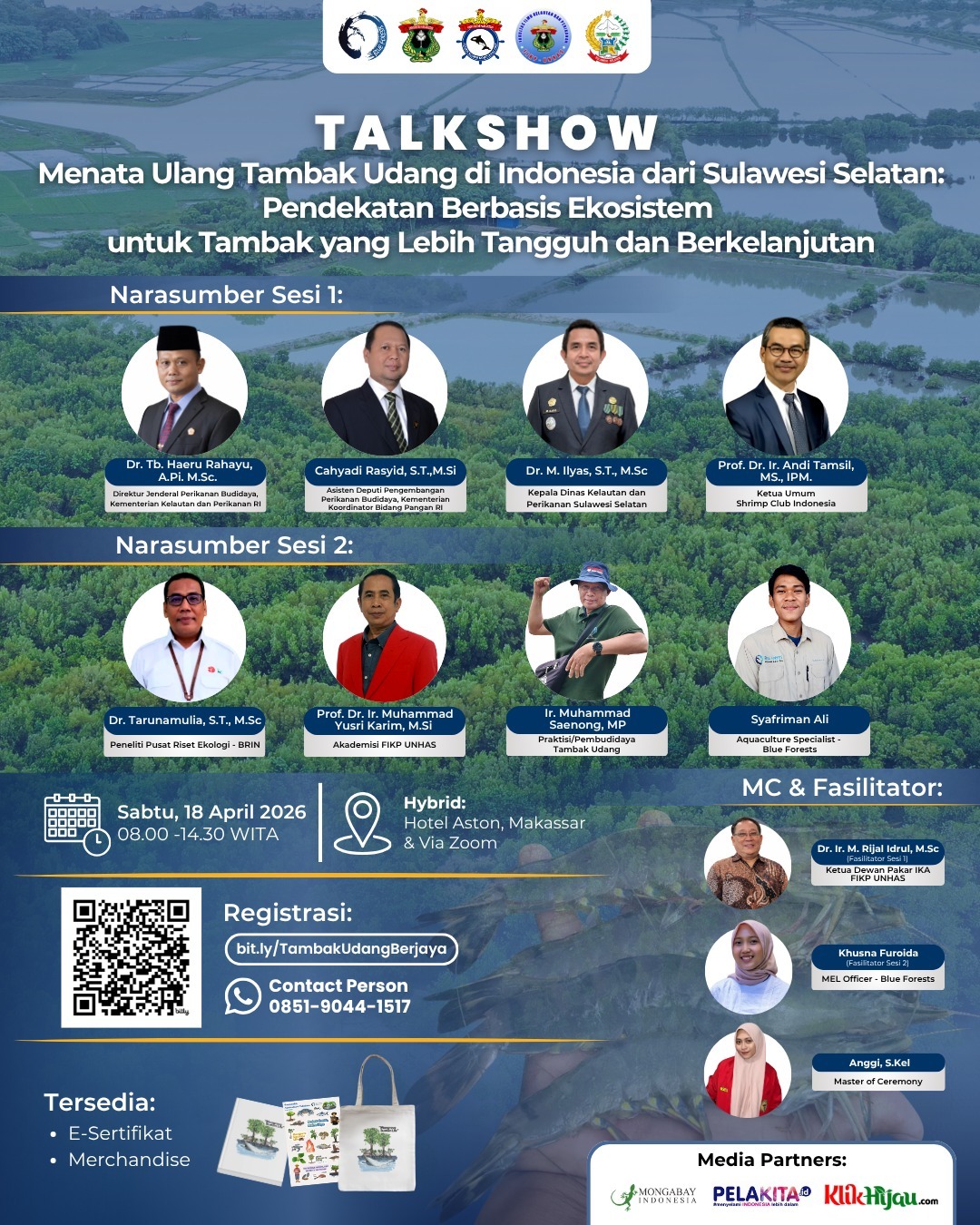 Melalui forum ini, diharapkan lahir gagasan dan rekomendasi strategis yang mampu menjadi pijakan dalam menata ulang masa depan tambak udang Indonesia—dimulai dari Sulawesi Selatan.