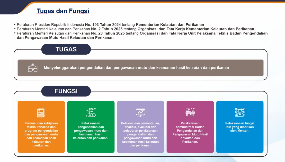 Peran vital ini dijalankan oleh Balai Pengendalian dan Pengawasan Mutu Hasil Kelautan dan Perikanan (BPPMHKP) Makassar.