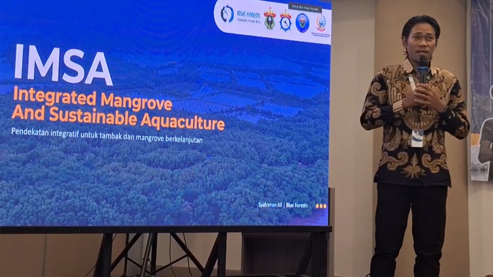 PELAKITA.ID – Aquaculture Specialist The Blue Forests, Syafriman Ali, membagikan pengalaman dan pembelajaran lapangan terkait pengelolaan tambak berkelanjutan dalam Workshop Tata Kelola Tambak Udang Sulawesi Selatan.