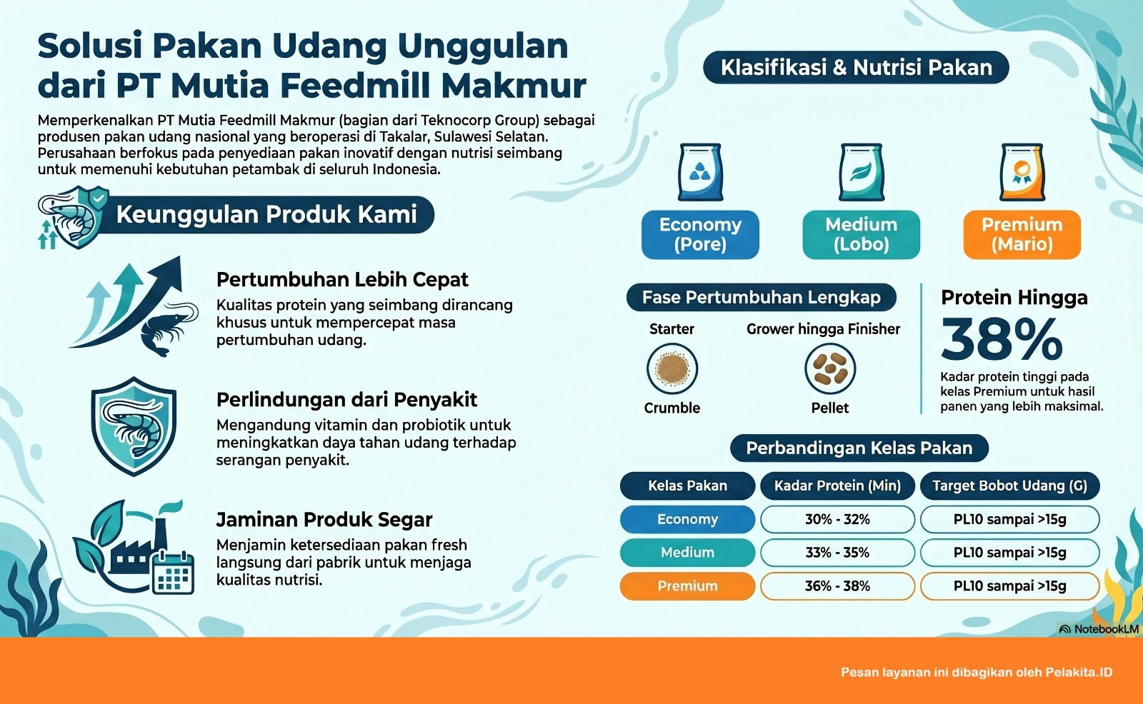 Dengan integrasi pabrik lokal di Takalar, segmentasi nutrisi yang akurat, serta dukungan teknis yang kuat, PT Mutia Feedmill Makmur bukan sekadar memproduksi pakan, melainkan sedang membangun kedaulatan industri akuakultur Indonesia yang lebih resilien.